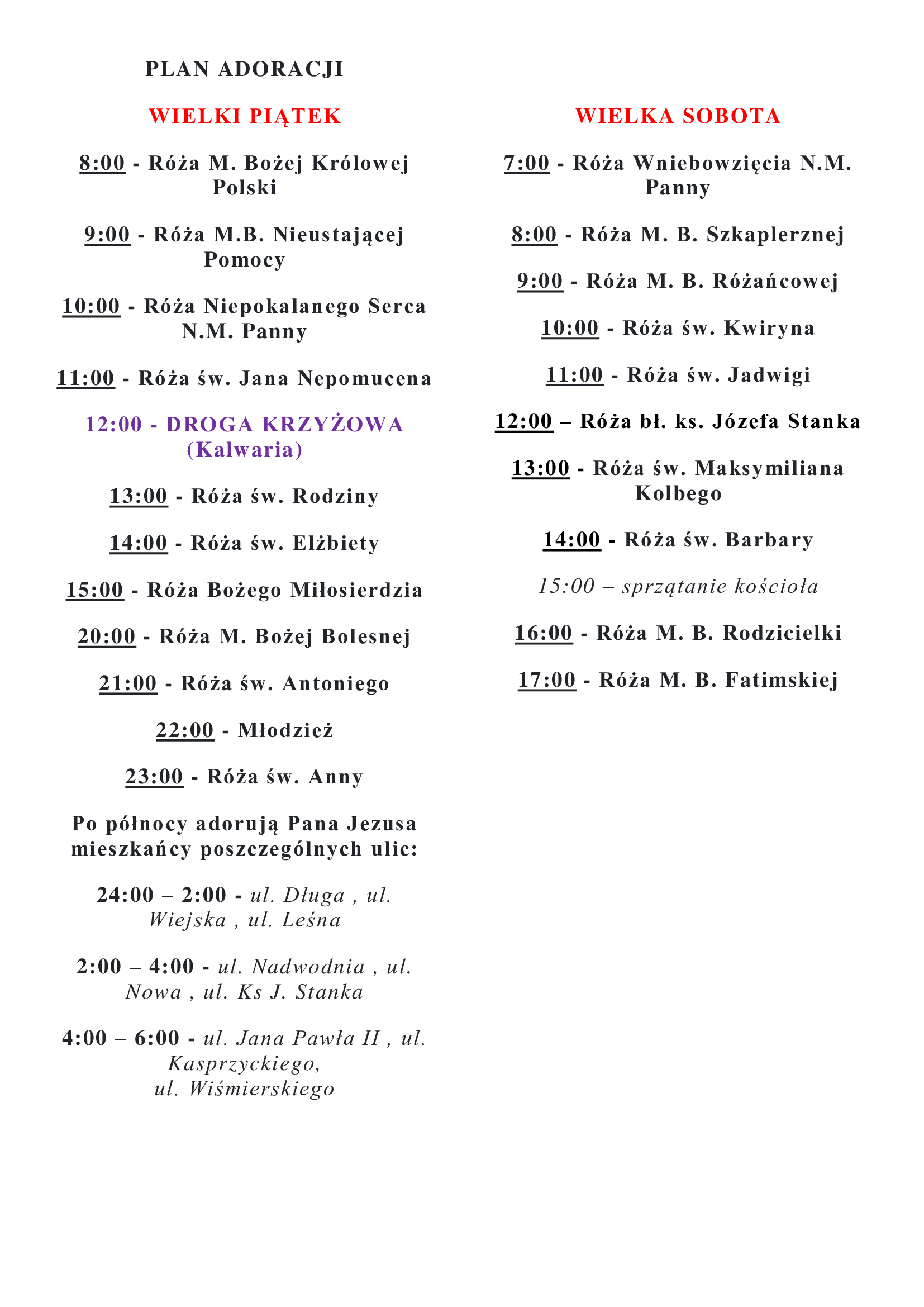 PLAN ADORACJI WIELKI PIĄTEK I SOBOTA 2026