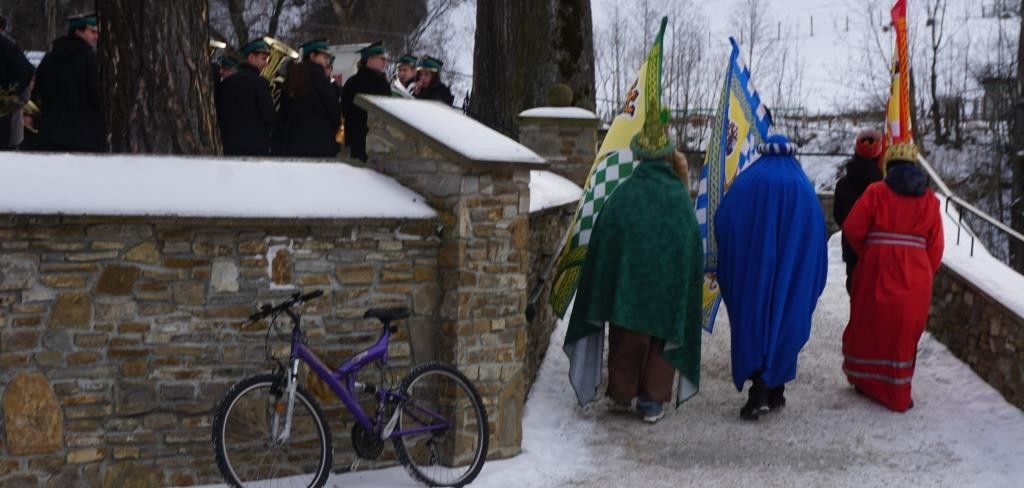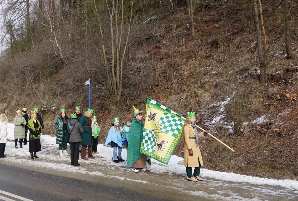 Od Urzędu Gminy szedł Orszak niebieski króla Baltazara, od Kapliczki Trzeciego Upadku Pana Jezusa orszak zielony prowadził król Kacper, a z Wigrądu podążał król Melchior z orszakiem czerwonym.