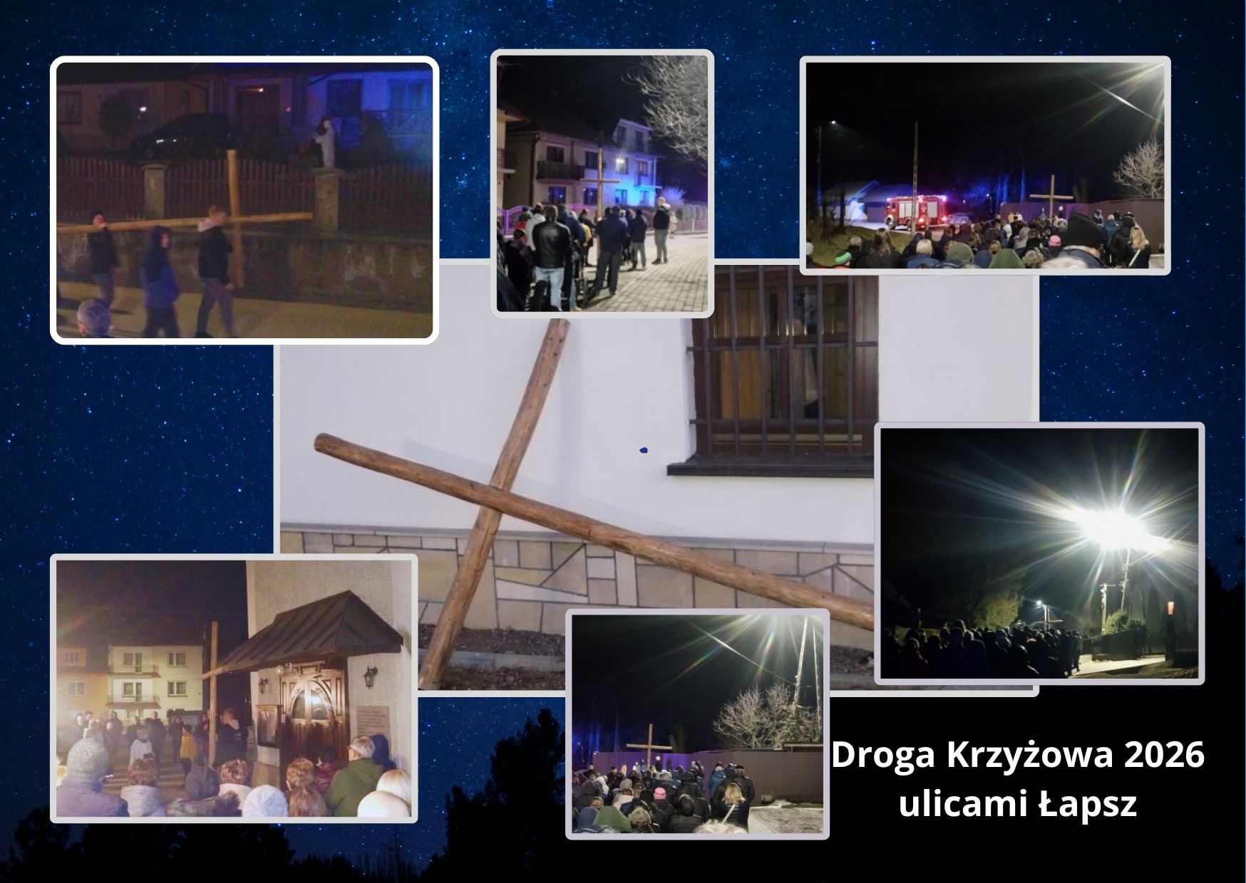 Po mszy świętej wieczornej w piątek 13 marca spod kościoła wyruszyła Droga Krzyżowa po ulicach naszej wsi. Trasa wiodła ulicą Jana Pawła II, przez ul. Długą na ul. Wiejską.