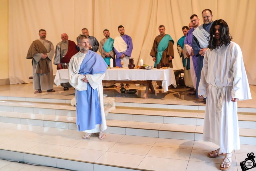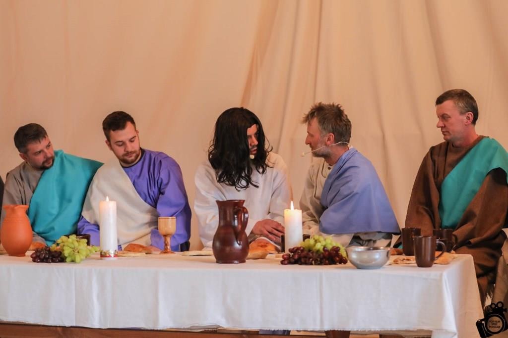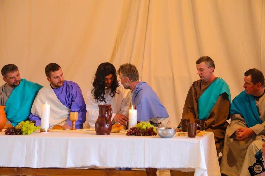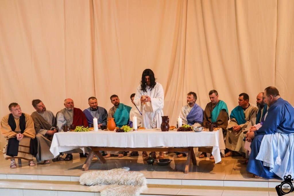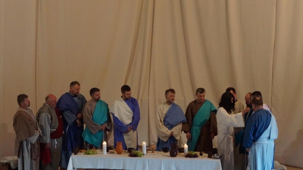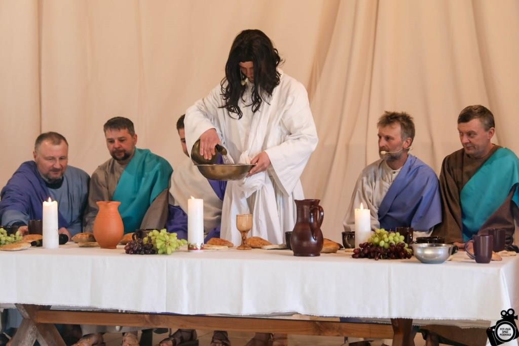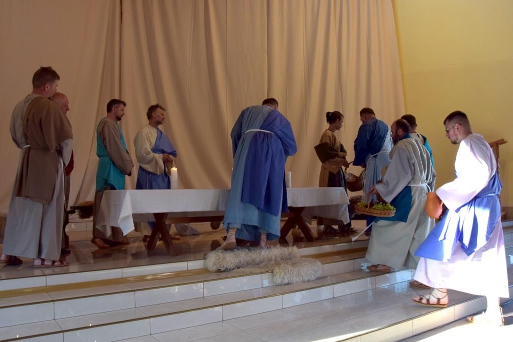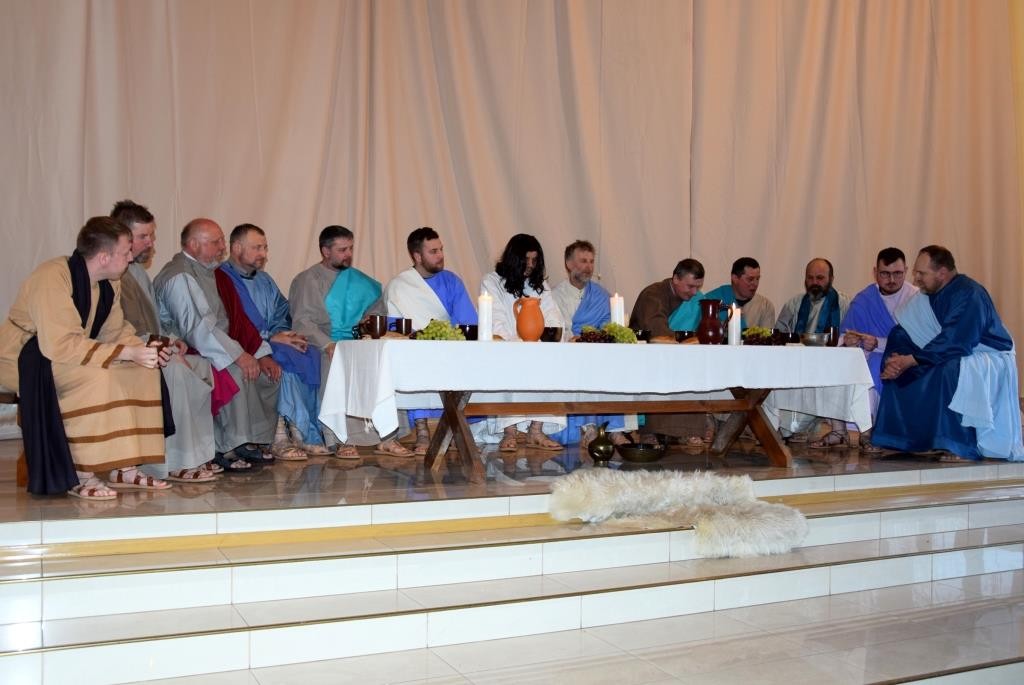 Organizatorzy po raz kolejny przygotowali głęboko poruszające przedstawienie, które skłaniało widzów do refleksji nad sprawami ostatecznymi, stwarzając okazję do głębszego wsłuchania się w słowa Jezusa, kierowane zarówno do apostołów, jak i do każdego człowieka. Dopełnieniem była podkreślająca nastrój muzyka oraz nawiązania do obecnej sytuacji na świecie, wojny na Ukrainie – zgromadzeni w kaplicy wierni wspólnie modlili się o pokój. Podobnie jak w niedzielnym Misterium Męki Pańskiej, role postaci z kart ewangelii zagrali sami Łapszanie, sprawiając swymi umiejętnościami i zaangażowaniem, iż wnętrze kaplicy zamieniło się w prawdziwy wieczernik. Przygotowanie wieczerzy, umywanie nóg uczniom, wspólny posiłek oraz swoisty testament jaki Mistrz przekazał swoim uczniom, to najważniejsze sceny czwartkowego misterium., które zamknęło przesłanie Jezusa, aktualne również w XXI wieku – idźcie i głoście!