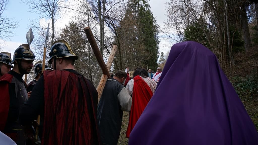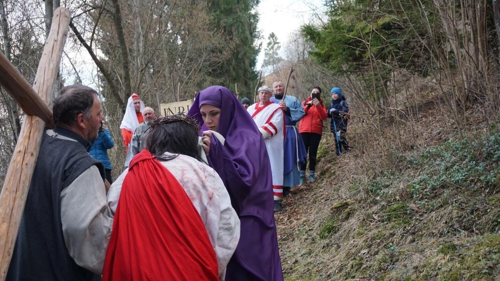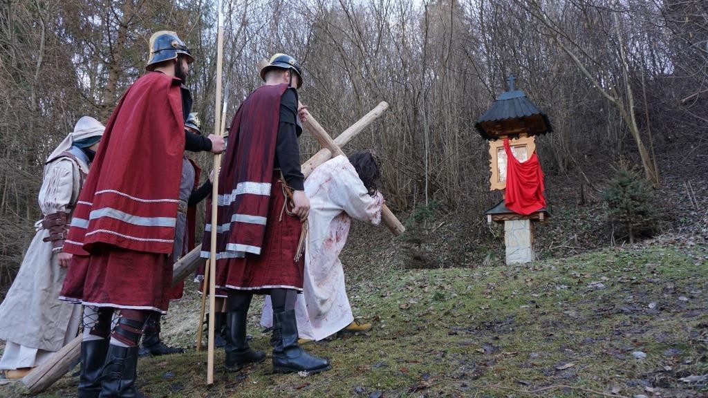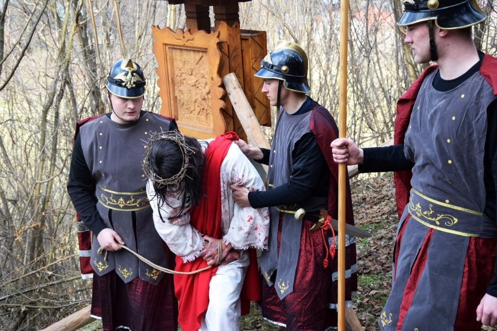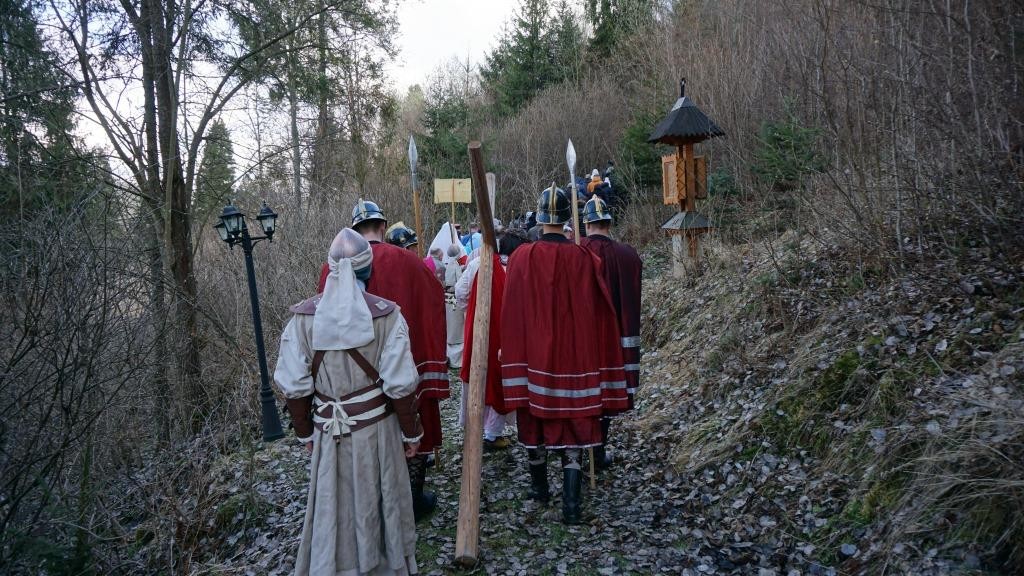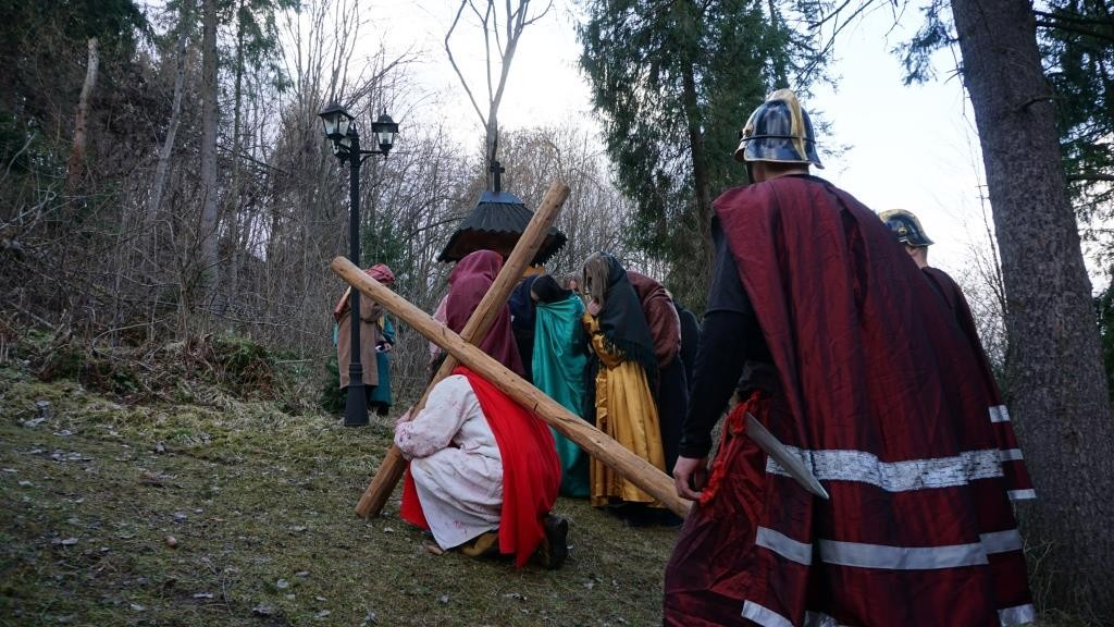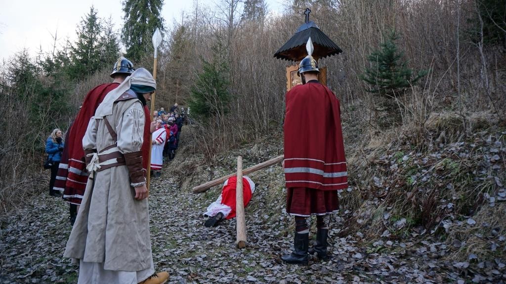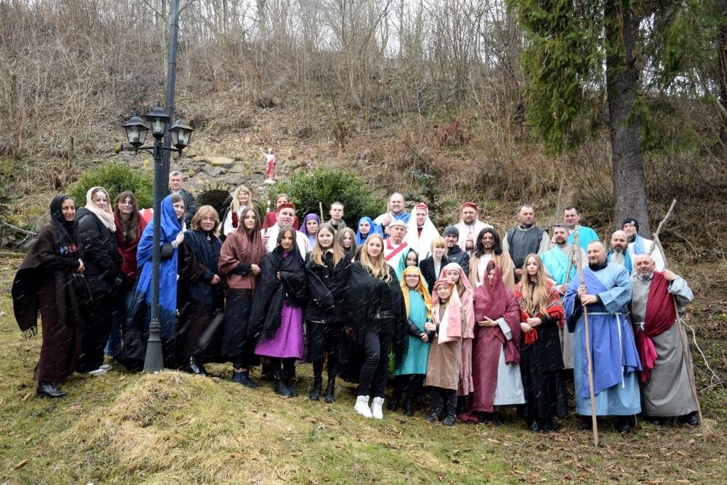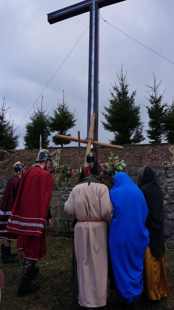 W drodze na Kalwarię wierni byli naocznymi świadkami trzykrotnego upadku Jezusa, spotkania z matką, Cyrenejczykiem i św. Weroniką, a w kulminacyjnym punkcie symbolicznego ukrzyżowania. Misterium zakończyło się przy stacji Grobu Pańskiego, gdzie ksiądz proboszcz udzielił wszystkim błogosławieństwa.