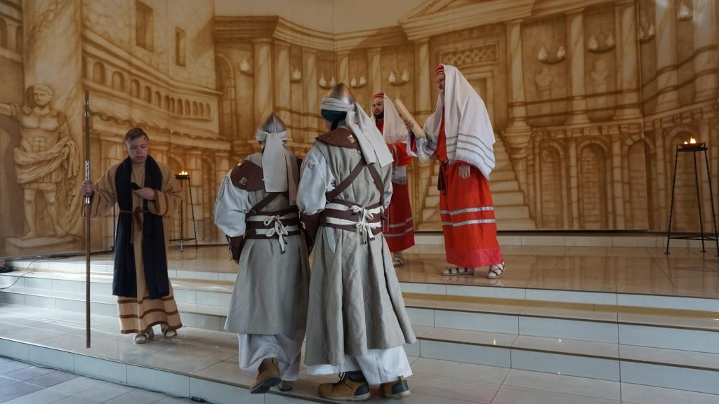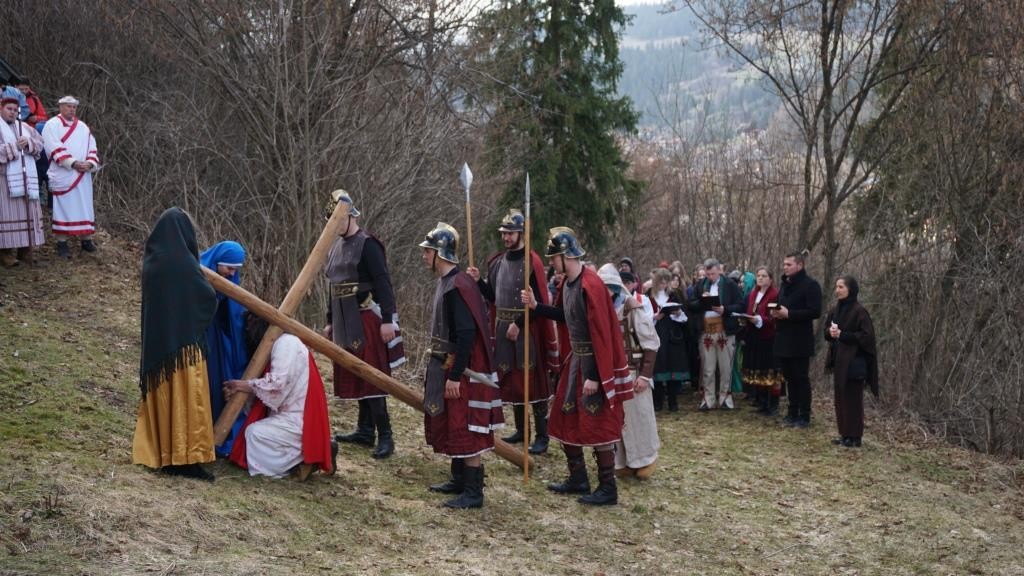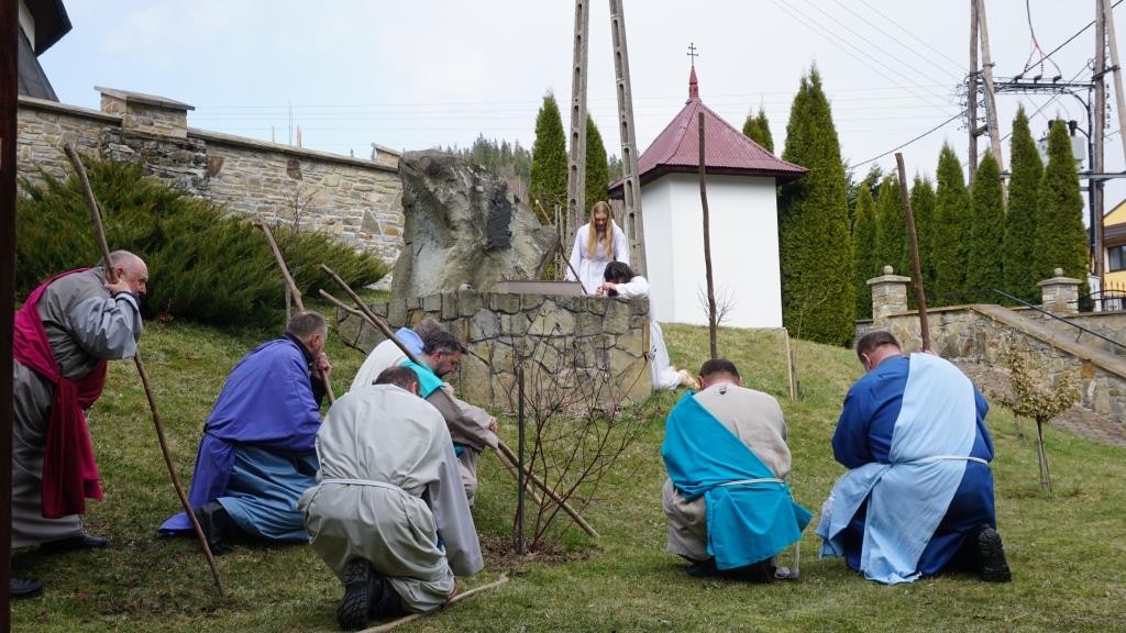 Uczestnicy mogli zobaczyć sceny poprzedzające ukrzyżowanie: posiedzenie Wysokiej Rady, sąd Piłata oraz niezwykle poruszającą modlitwę w Ogrodzie Oliwnym, która zakończyła się pojmaniem Jezusa. W postacie z kart ewangelii wcielili się jak co roku sami Łapszanie, a podniosła muzyka i rozbudowana narracja pełna poetyckich odniesień, stworzyły atmosferę modlitewnej zadumy. W tak podniosłym momencie nie zapomniano także o Ukrainie – modlitwa pańska w języku naszych wschodnich sąsiadów oraz wspólne wołanie o pokój stały się klamrą, zamykającą rozważania, w których przewijał się motyw cierpienia, mającego w naszym życiu różne oblicza.