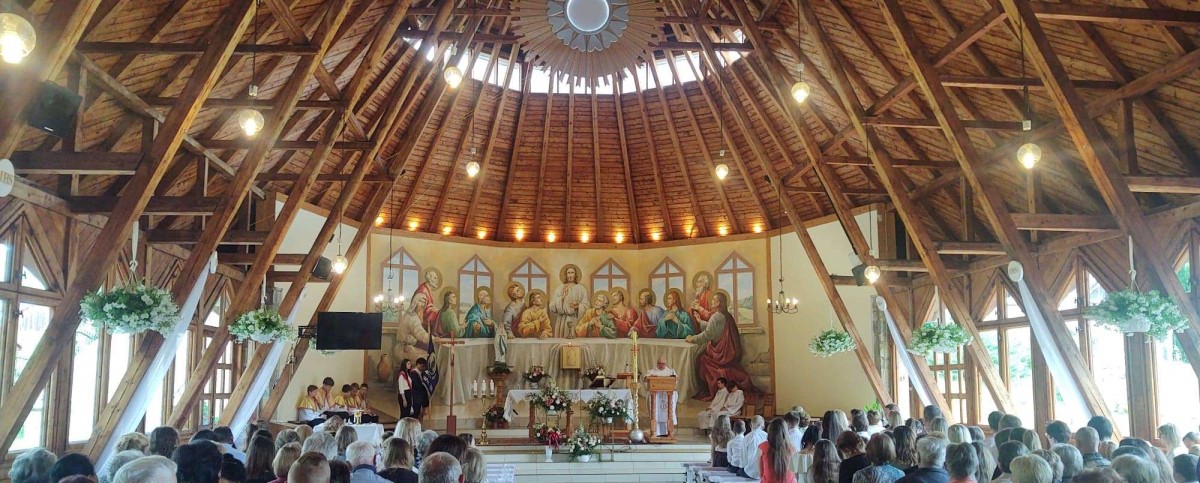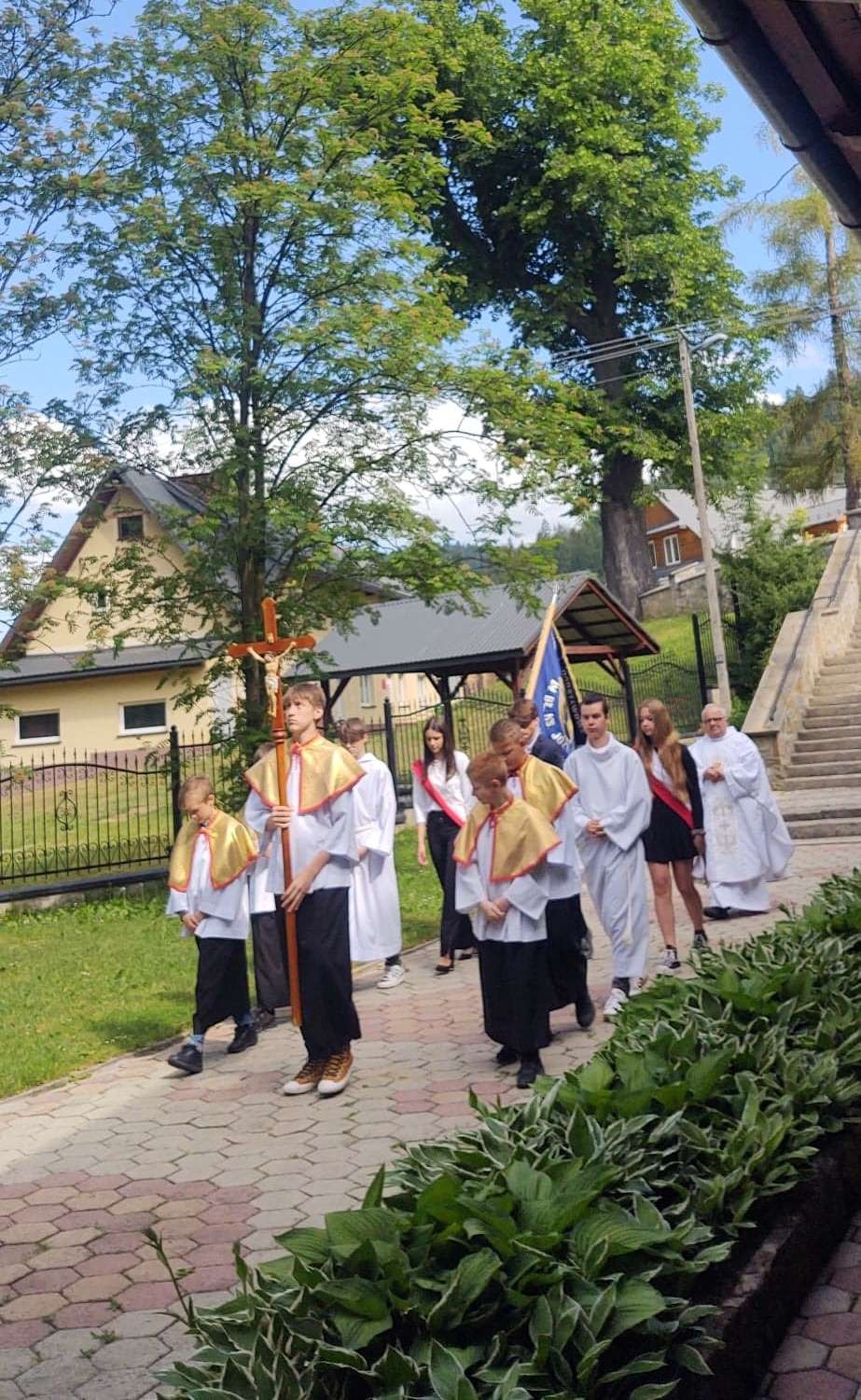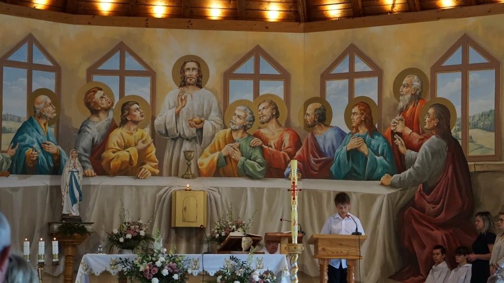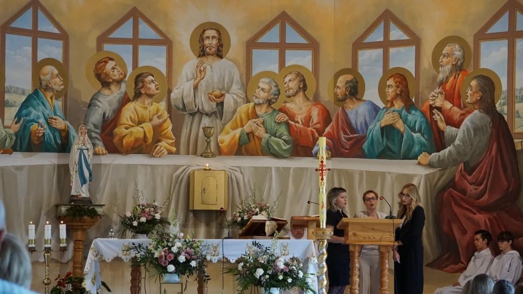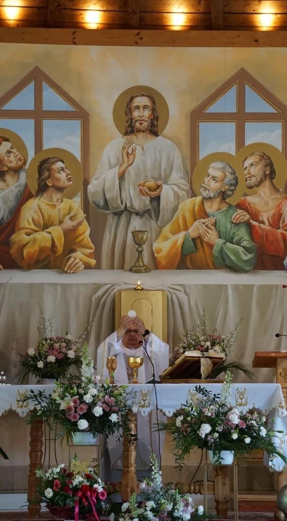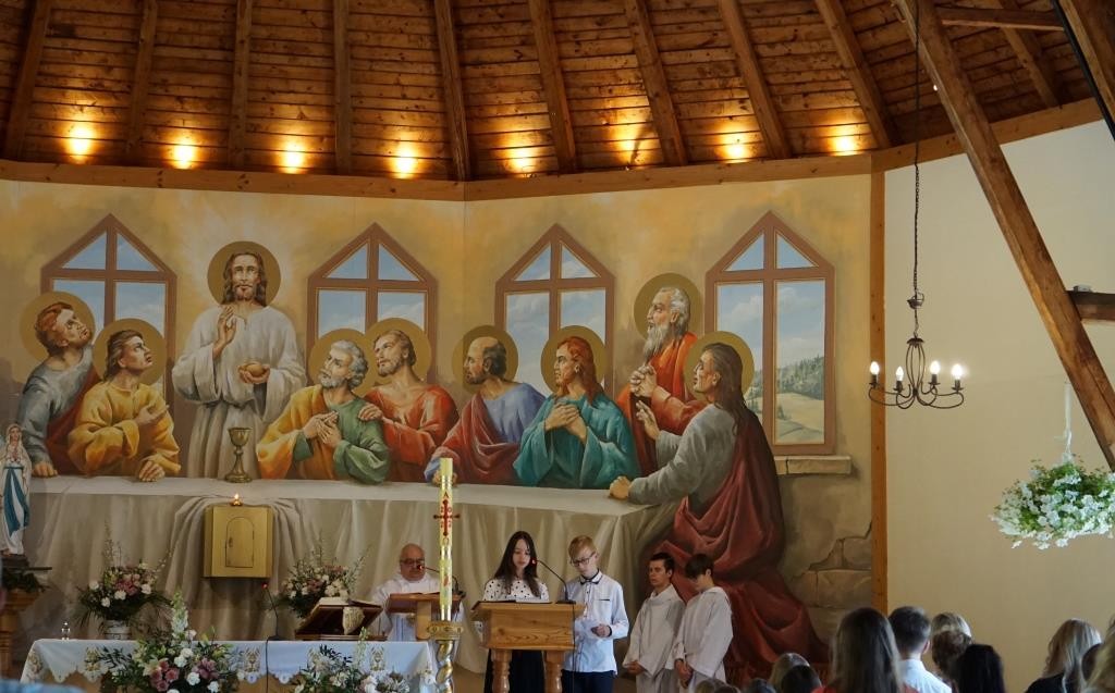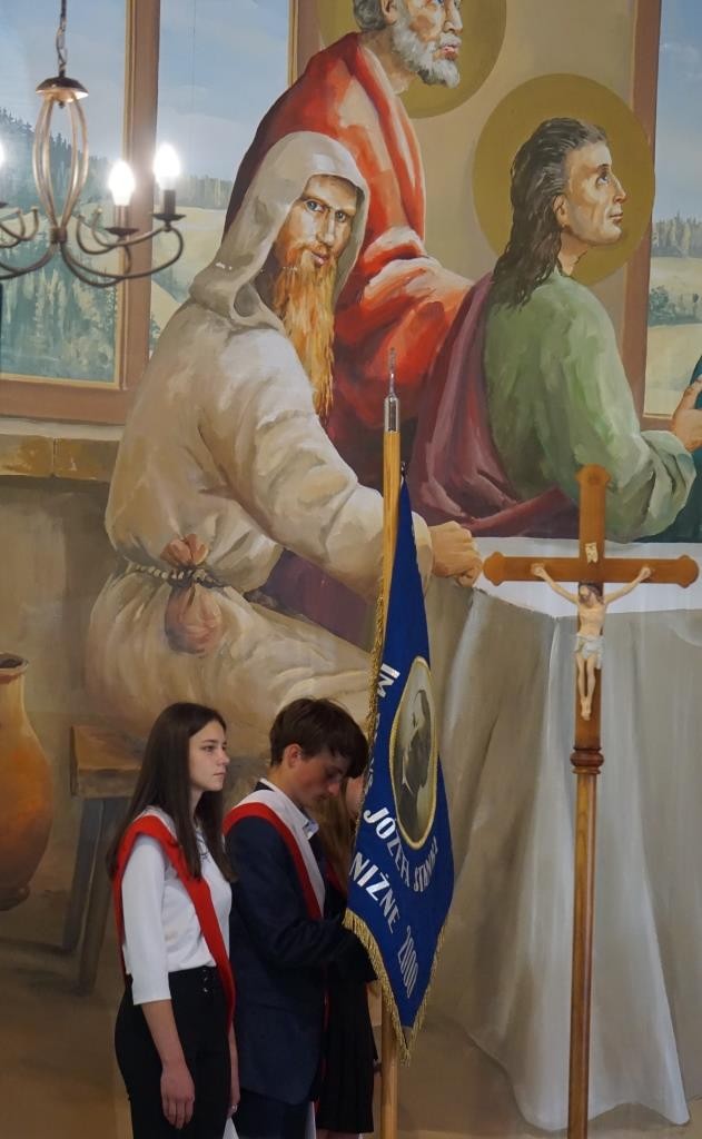 Każda z tych 108 osób wykazała się wielkim heroizmem wiary, oddając za nią życie. Wszyscy oni żyli w czasie szczególnie trudnym, ale mieli mocną wiarę i ufali do końca Bogu. Dzisiejsze święto Najświętszej Trójcy wskazuje na trzy Boskie Osoby, którymi są: Ojciec, Syn i Duch Święty połączone nierozerwalnie i tworzące jedność. I tak my wszyscy mamy tworzyć jedność, o tym wspominał Ksiądz Proboszcz w kazaniu podczas mszy świętej. Bo właśnie jedność, zgoda, umiejętność porozumiewania się i tworzenia relacji między ludźmi jest podstawą budowania pokoju i szczęśliwego życia. We mszy uczestniczyli uczniowie, nauczyciele i licznie wszyscy mieszkańcy naszej wsi. Śpiewała pięknie schola, a młodzież czytała teksty pisma świętego. Grupa nauczycieli śpiewała dziś psalm z refrenem: Jak jest przedziwne imię Twoje, Panie, jest pięknym hymnem wyśpiewywanym na cześć Stwórcy tego świata. I w ten czerwcowy dzień dziękujmy za dar beatyfikacji patrona naszej szkoły i prośmy go o potrzebne łaski.