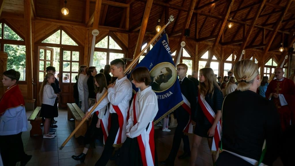 czytanej dziś ewangelii mówił o ludzkiej mądrości, o tym iż tej mądrości człowieka i wielkości człowieka nie da się z niczym porównać, a czas nauki w szkole ma służyć nie tylko zdobywaniu tej mądrości, ale i nauce życia we współczesnym świecie. Ważne przecież jest to aby młody człowiek uczył się życia wśród innych i bycia dla innych, aby uczył się bycia dobrym i wrażliwym człowiekiem. Bo szkoła to nie tylko wiedza. „Wypłyń na głębię” – te słowa mają wskazywać uczniom, aby rozwijali się i poznawali nowe rzeczy, ucząc się być dobrymi. Niestety historia, a szczególnie ta współczesna często pokazuje, że pomimo zdobytej wiedzy ludzie w XXI wieku nie wyciągają wniosków z historii. Wspominana dziś rocznica wybuchu II wojny światowej obok trawiących wojen na świecie, a szczególnie tej na Ukrainie jest tego smutnym przykładem. Dlatego człowiek musi „wypływać na głębię”, by stawać się pięknym i mądrym człowiekiem i uczyć się życia wśród innych.