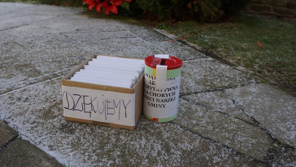 Ofiarodawcy otrzymywali kartki świąteczne przygotowane przez uczniów m.in. naszej szkoły i świetlicy. Zebrane ofiary trafią do rodzin potrzebujących dzieci z przeznaczeniem na ich rehabilitację i leczenie. BARDZO dziękujemy naszym uczniom, ich rodzicom, nauczycielom i p. prowadzącej łapszańską świetlicę za przygotowanie kartek świątecznych.