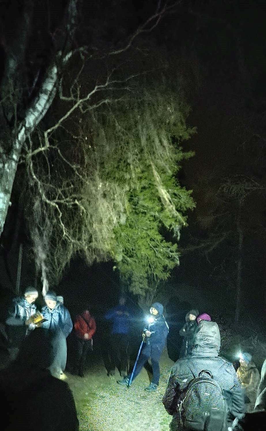 W tym roku pogoda wyjątkowo sprzyjała, nie było śniegu i błota, tylko z lekka padał deszcz na końcu drogi. W grupie szło ok. trzydziestu kilku osób nie tylko z naszej parafii, ale i okolicznych wsi i regionu, a rozważania jakie przygotował i czytał ks. Dariusz dotyczyły rodziny. Cała trasa to było ok. 18 km, ok. 25 tys. kroków, a czas przejścia to 5 godzin. To liczby i zmęczone nogi, ale duchowa strona tego wyzwania dotyczyła modlitw za rodziny. W nocnej ciszy i ciemności można było wsłuchać się w słowa, w ciszę i modlitwę. Oczywiście był i czas na rozmowę i odpoczynek. Dziękujemy wszystkim uczestnikom za udział, za wspólne wędrowanie i wspólną modlitwę. Dziękujemy ks. Dariuszowi za duchową opiekę i prowadzenie. Mamy nadzieję, że droga ta była dla wszystkich wyzwaniem z modlitwą i z Bogiem:)