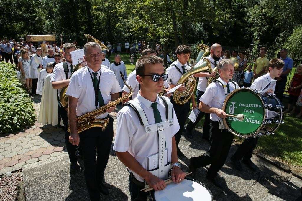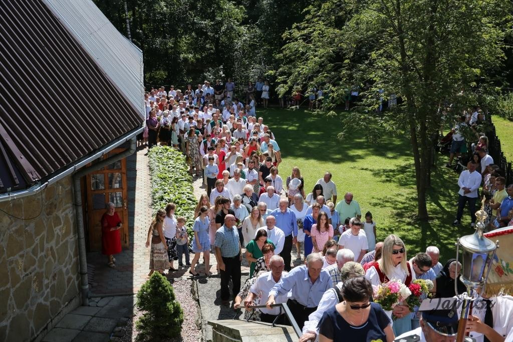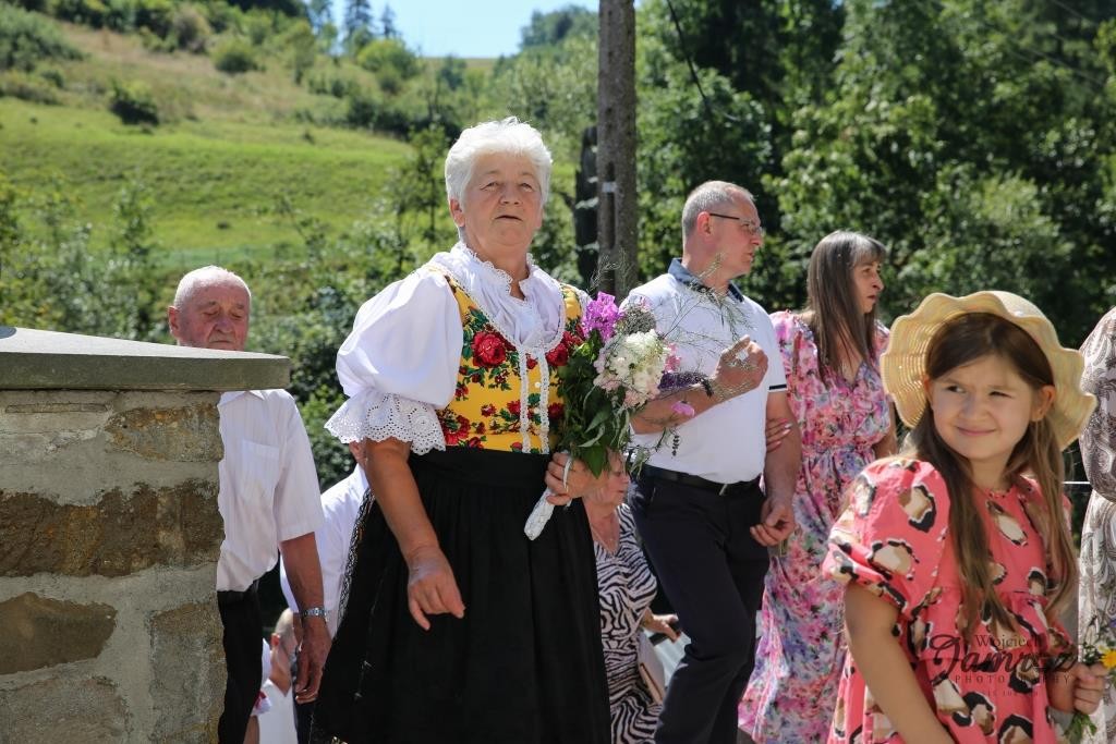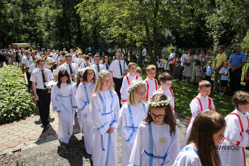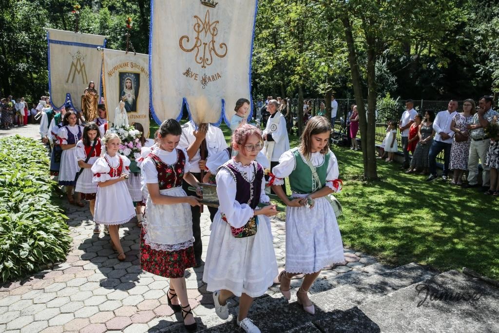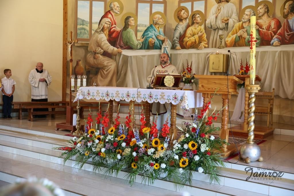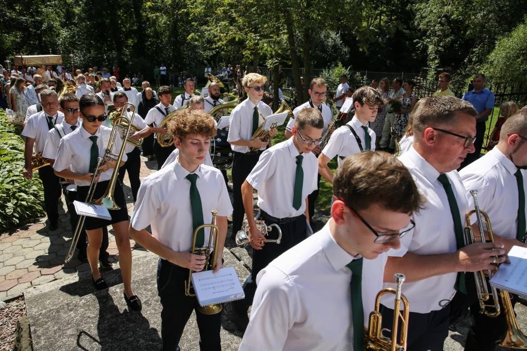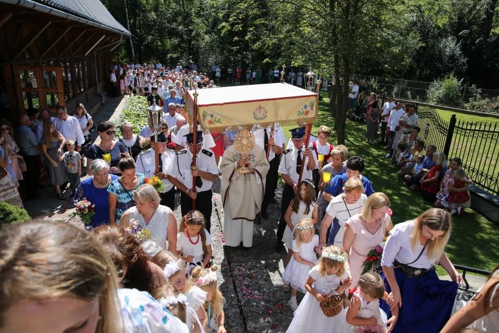 To była nasza odpustowa suma, uroczysta, w sierpniowej pogodzie, w pięknie udekorowanej kaplicy, gdzie licznie zebrali się parafianie. W tym roku przygotowania do odpustu spoczywały na mieszkańcach rejonu VI. Wiele osób założyło stroje regionalne. Był obecny przedstawiciel Zakonu Rycerskiego Świętego Grobu Bożego p. Sławomir Czarnecki z małżonką. Tradycyjnie w procesji uczestniczyli strażacy, orkiestra (już 125-latka), dziewczęta, panie i panowie w strojach regionalnych nieśli feretrony, panie szły ze świecami, były dzieci pierwszokomunijne, a dziewczynki sypały kwiaty. Procesja zakończyła się w kościele odśpiewaniem hymnu „Ciebie Boga wysławiamy…”. Wysławiajmy boga w pięknie kwiatów lata, w zbieranych plonach i w naszym życiu codziennym.
