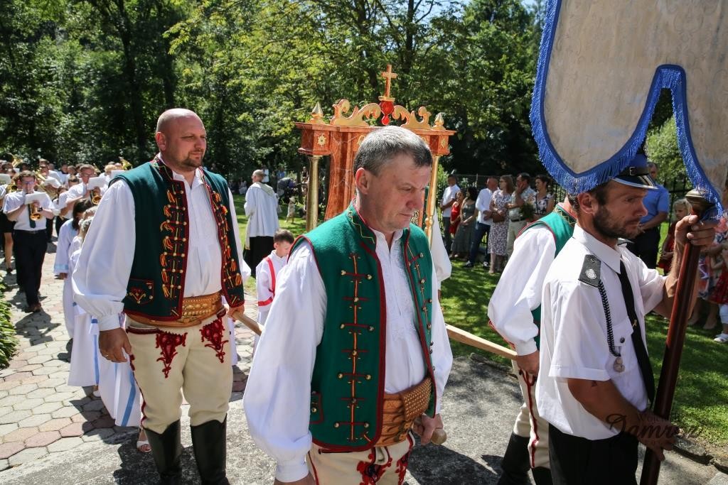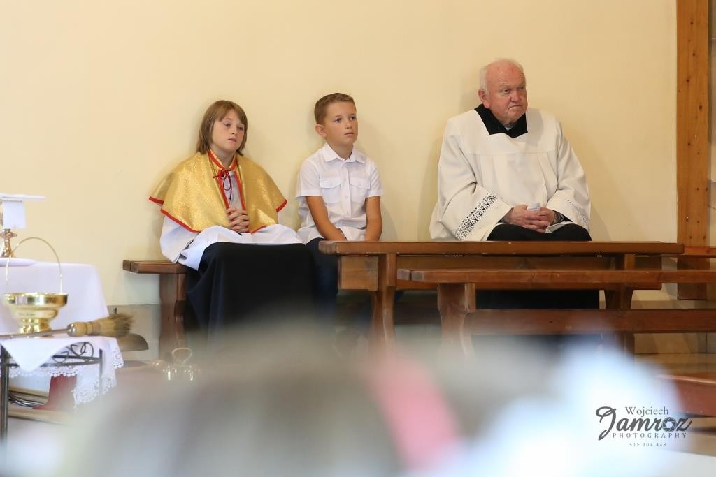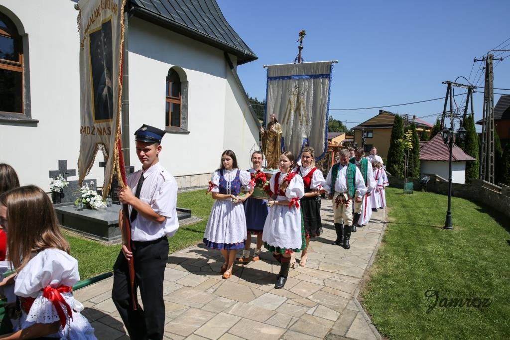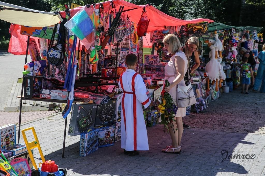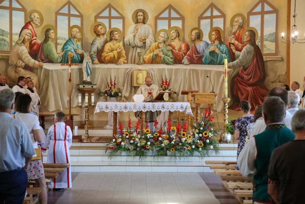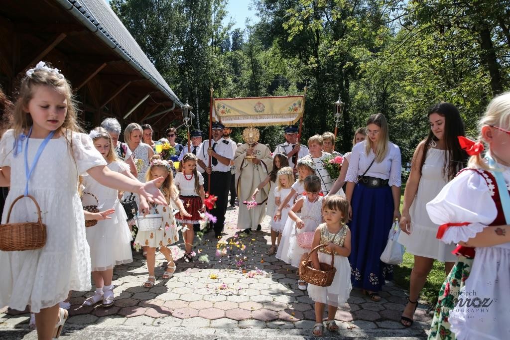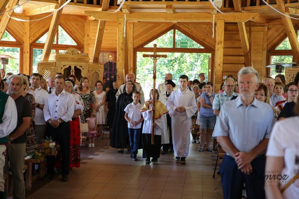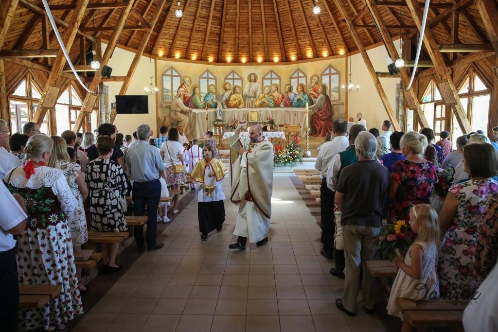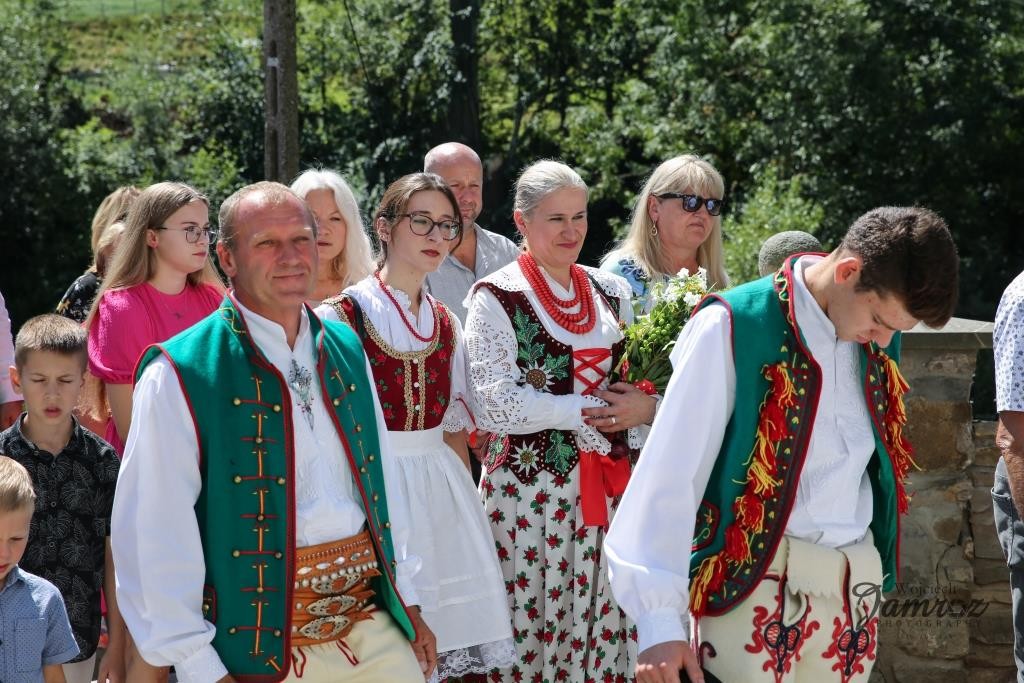 To była nasza odpustowa suma, uroczysta, w sierpniowej pogodzie, w pięknie udekorowanej kaplicy, gdzie licznie zebrali się parafianie. W tym roku przygotowania do odpustu spoczywały na mieszkańcach rejonu VI. Wiele osób założyło stroje regionalne. Był obecny przedstawiciel Zakonu Rycerskiego Świętego Grobu Bożego p. Sławomir Czarnecki z małżonką. Tradycyjnie w procesji uczestniczyli strażacy, orkiestra (już 125-latka), dziewczęta, panie i panowie w strojach regionalnych nieśli feretrony, panie szły ze świecami, były dzieci pierwszokomunijne, a dziewczynki sypały kwiaty. Procesja zakończyła się w kościele odśpiewaniem hymnu „Ciebie Boga wysławiamy…”. Wysławiajmy boga w pięknie kwiatów lata, w zbieranych plonach i w naszym życiu codziennym.