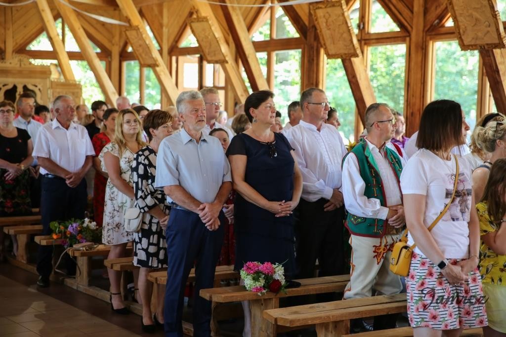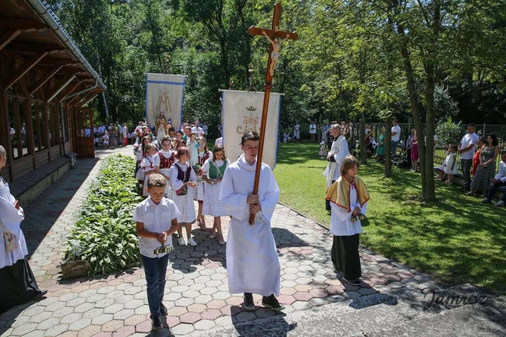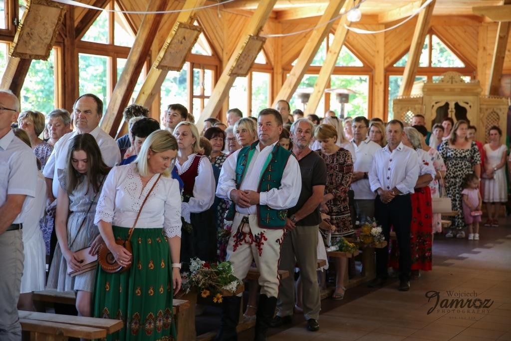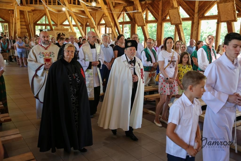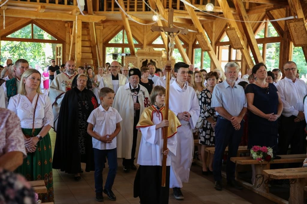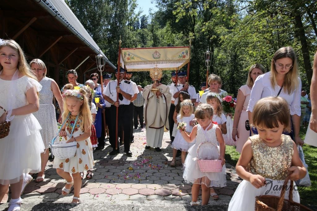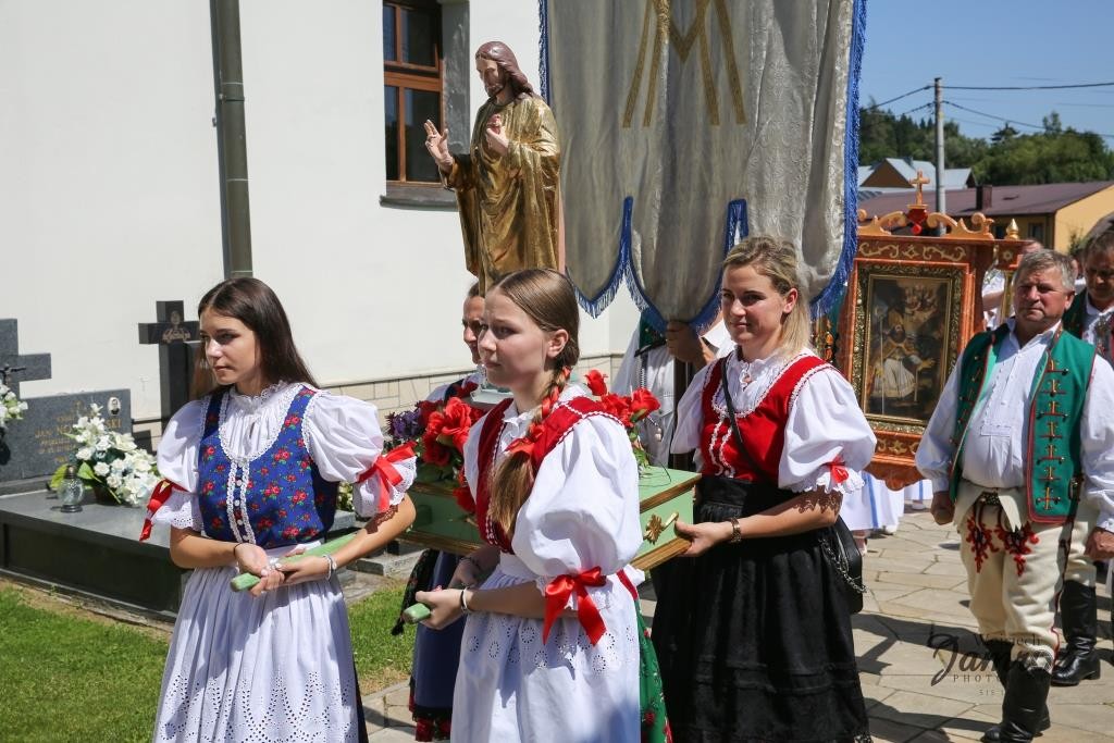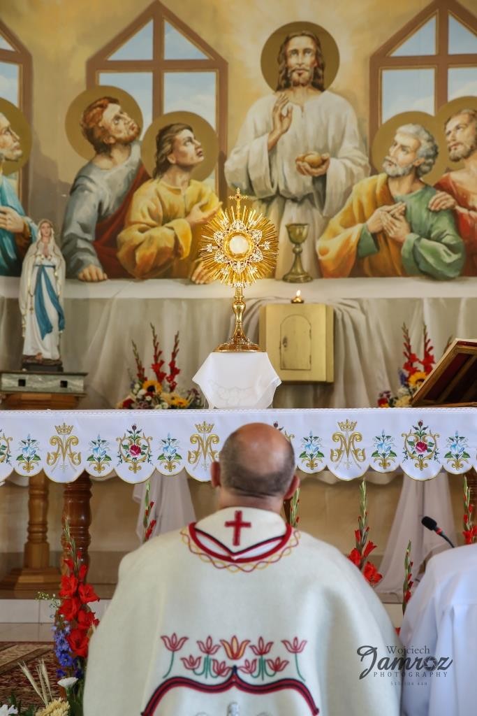 To była nasza odpustowa suma, uroczysta, w sierpniowej pogodzie, w pięknie udekorowanej kaplicy, gdzie licznie zebrali się parafianie. W tym roku przygotowania do odpustu spoczywały na mieszkańcach rejonu VI. Wiele osób założyło stroje regionalne. Był obecny przedstawiciel Zakonu Rycerskiego Świętego Grobu Bożego p. Sławomir Czarnecki z małżonką. Tradycyjnie w procesji uczestniczyli strażacy, orkiestra (już 125-latka), dziewczęta, panie i panowie w strojach regionalnych nieśli feretrony, panie szły ze świecami, były dzieci pierwszokomunijne, a dziewczynki sypały kwiaty. Procesja zakończyła się w kościele odśpiewaniem hymnu „Ciebie Boga wysławiamy…”. Wysławiajmy boga w pięknie kwiatów lata, w zbieranych plonach i w naszym życiu codziennym.