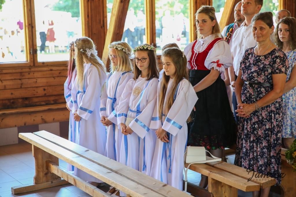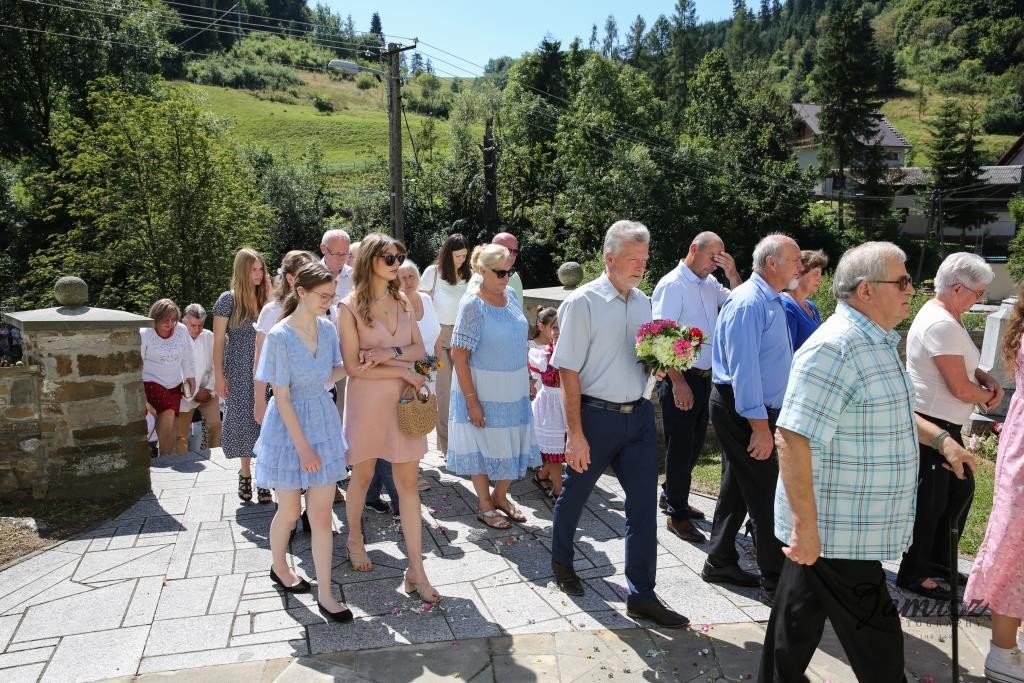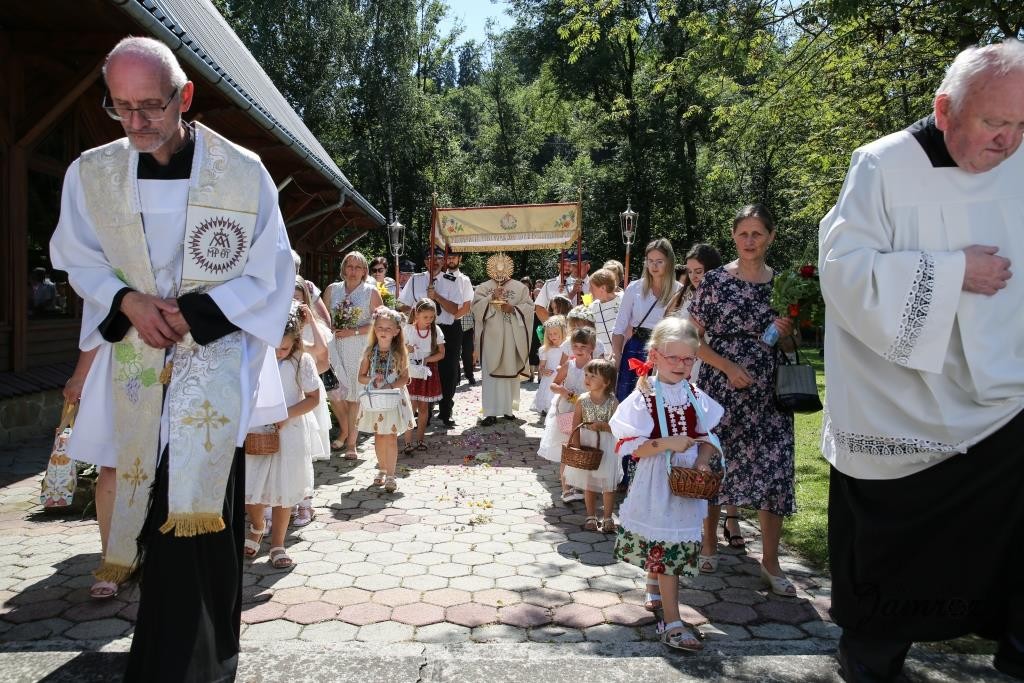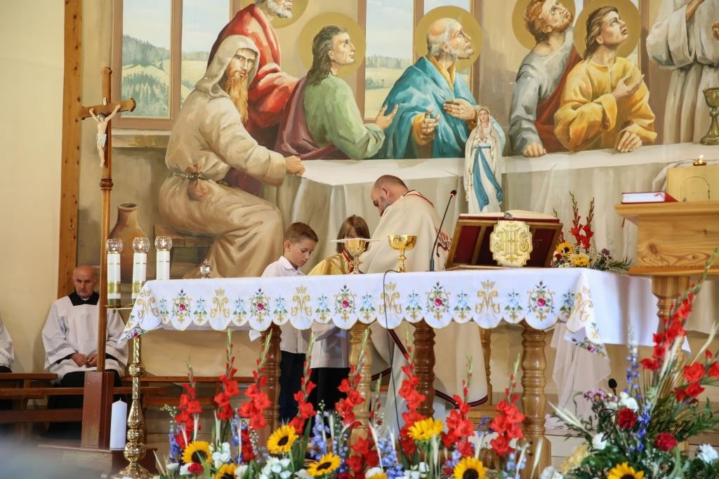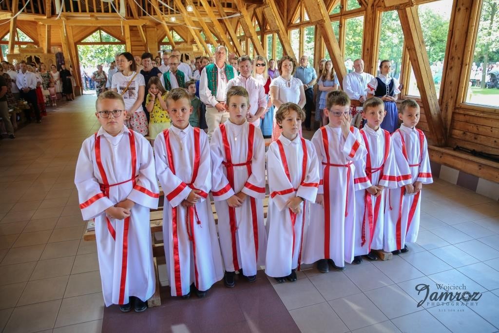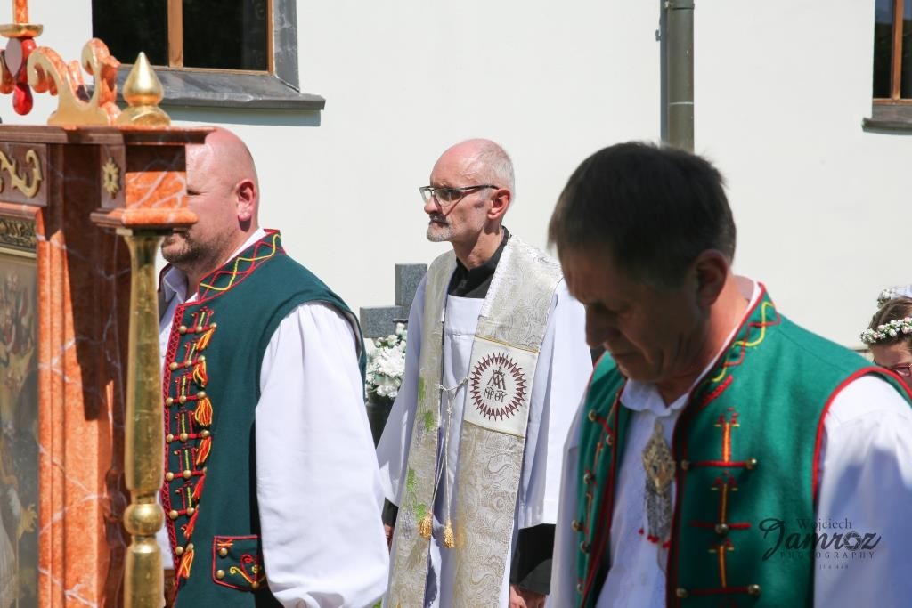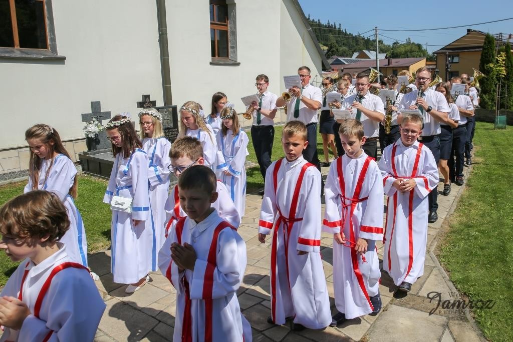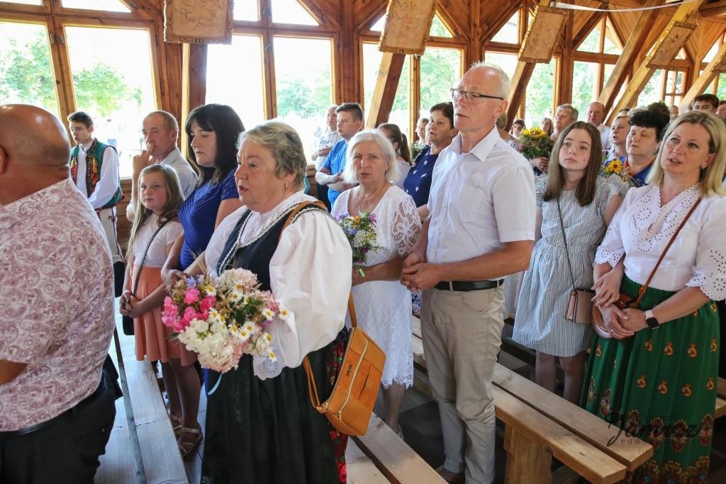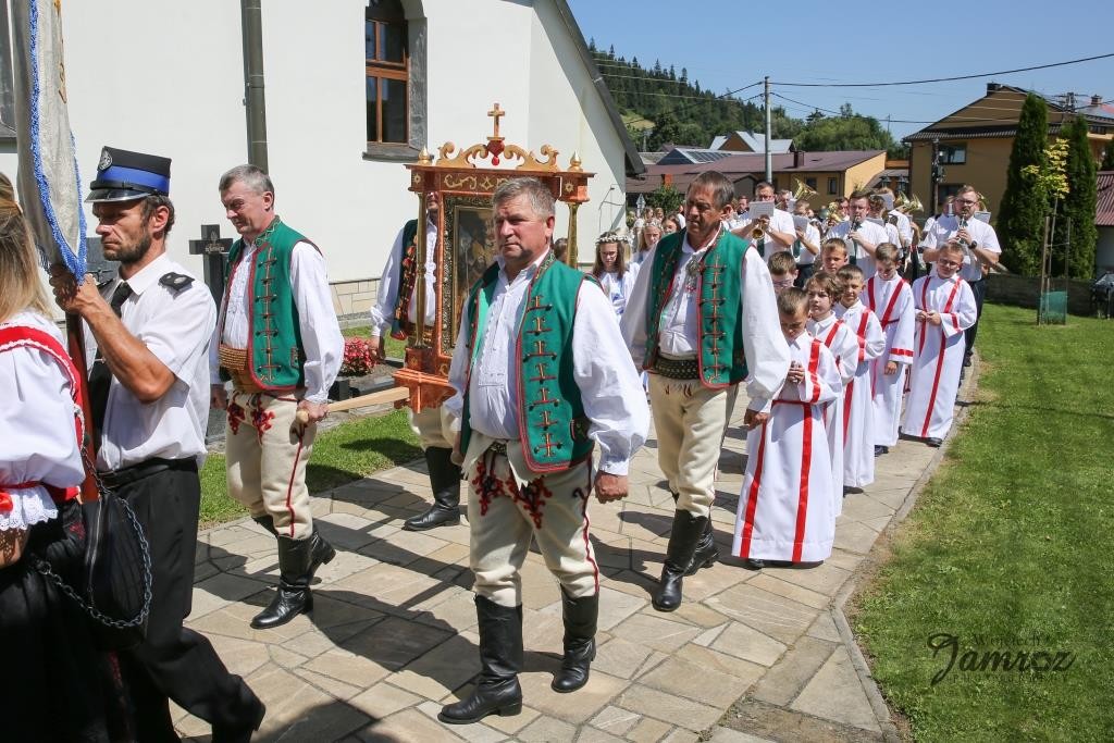 To była nasza odpustowa suma, uroczysta, w sierpniowej pogodzie, w pięknie udekorowanej kaplicy, gdzie licznie zebrali się parafianie. W tym roku przygotowania do odpustu spoczywały na mieszkańcach rejonu VI. Wiele osób założyło stroje regionalne. Był obecny przedstawiciel Zakonu Rycerskiego Świętego Grobu Bożego p. Sławomir Czarnecki z małżonką. Tradycyjnie w procesji uczestniczyli strażacy, orkiestra (już 125-latka), dziewczęta, panie i panowie w strojach regionalnych nieśli feretrony, panie szły ze świecami, były dzieci pierwszokomunijne, a dziewczynki sypały kwiaty. Procesja zakończyła się w kościele odśpiewaniem hymnu „Ciebie Boga wysławiamy…”. Wysławiajmy boga w pięknie kwiatów lata, w zbieranych plonach i w naszym życiu codziennym.