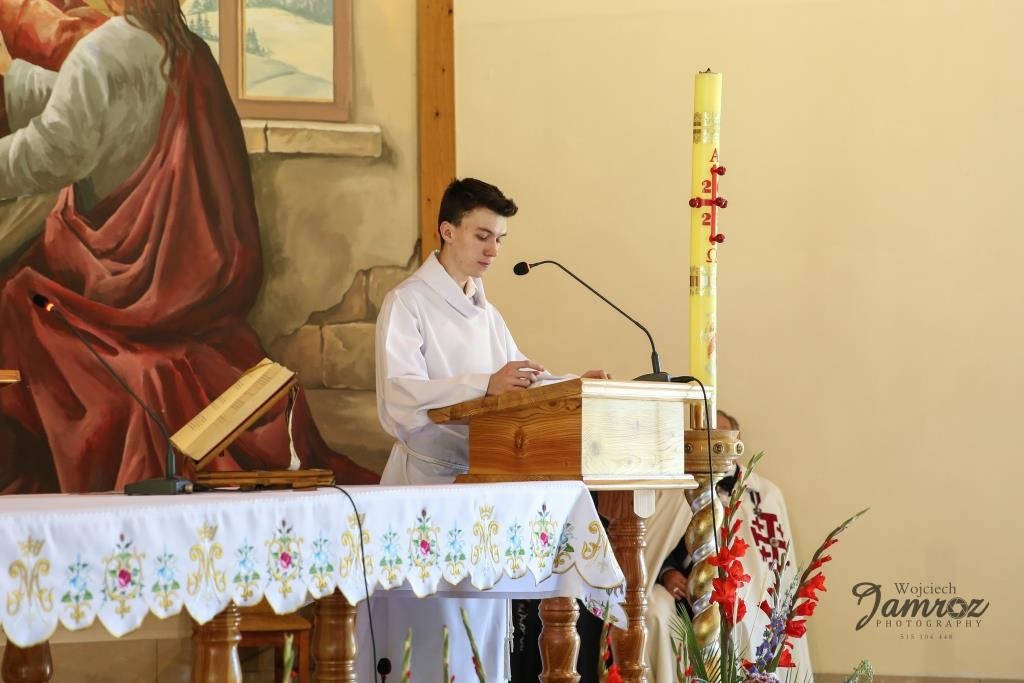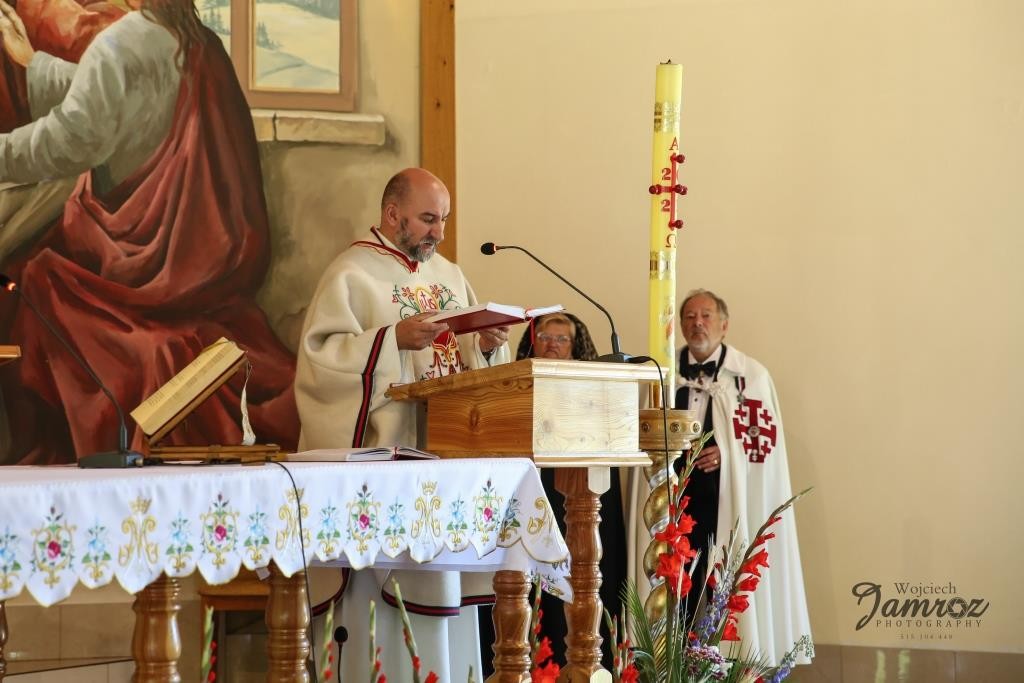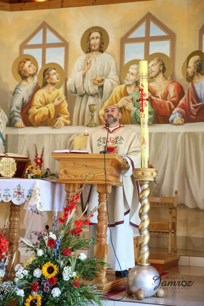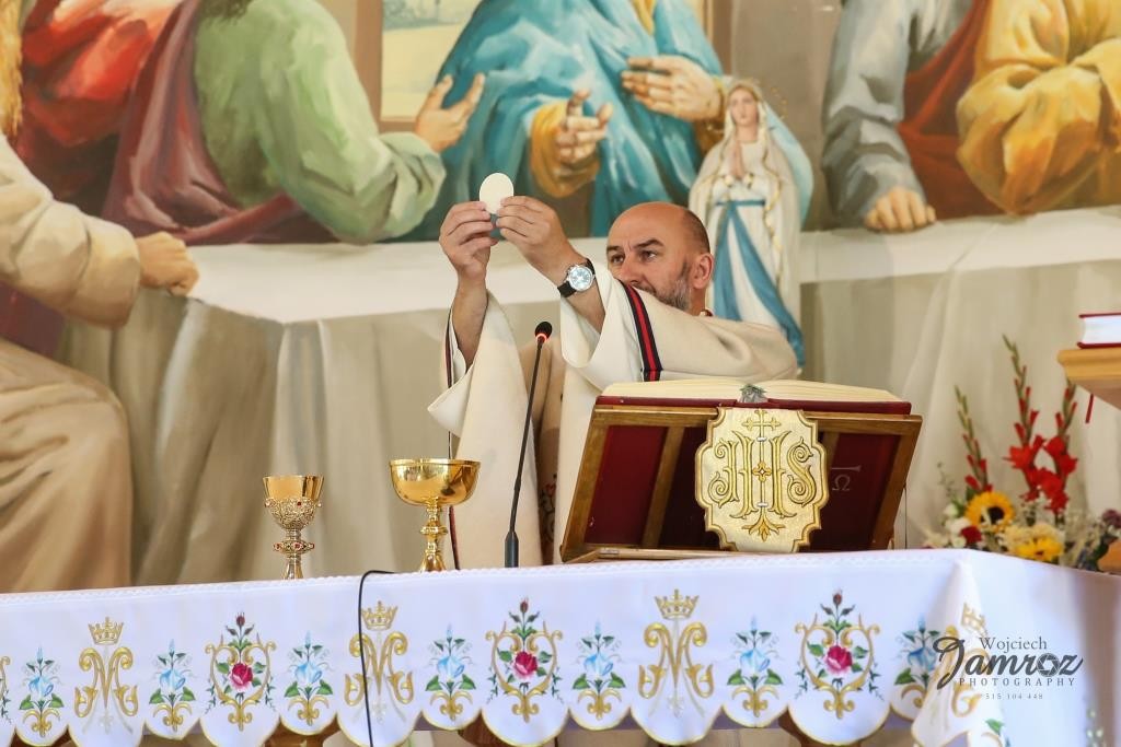 Uroczystej odpustowej sumie przewodniczył o. Dariusz Bakalarz. W homilii o. Dariusz nawiązał do wolności człowieka, odpowiedzialności i miłości poruszając trudny temat aborcji w odniesieniu do postawy Maryi, która została matką Syna Bożego i nie ulękła się. I człowiek w swym życiu musi podejmować trudne decyzje, a nieraz bardzo trudne, ale zawsze musi kierować się dekalogiem i sumieniem. Bo bukiety kwiatów świątecznych nie są tylko zwykłymi kwiatami, to takie bukiety darów i dobrych uczynków i tego co człowiek zbierze w swoim życiu dokonując po drodze różnych wyborów. Każdy z nas musi zanieść kiedyś taki swój bukiet na końcu swego życia przed samego Boga. O. Dariusz życzył byśmy wszyscy stanęli kiedyś z naręczami pięknych życiowych bukietów.