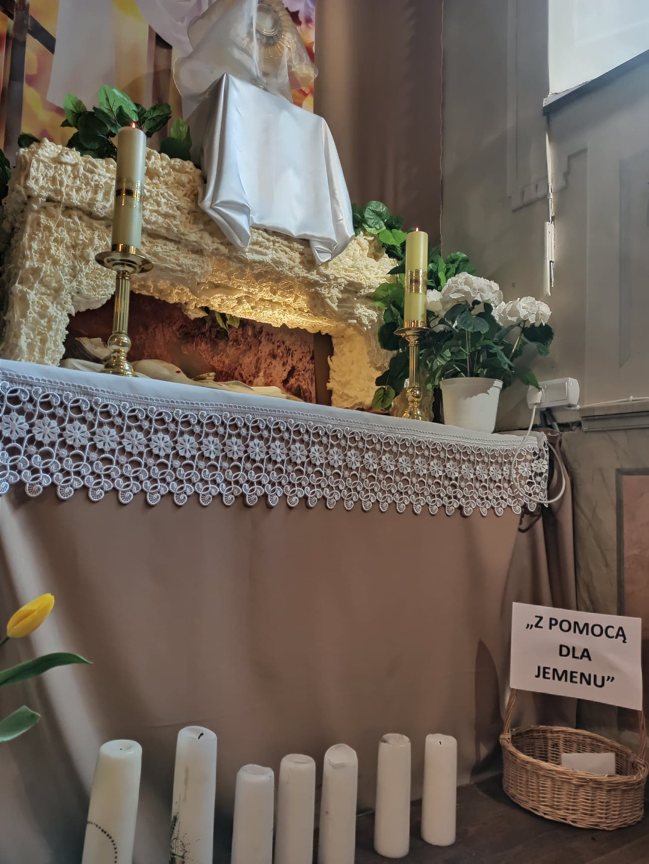 Na początku Wielkiego Postu została ogłoszona akcja „Z POMOCĄ DLA JEMENU” - jałmużna wielkopostna. Za organizację w szkole odpowiedzialni byli: B. Fic. B. Kowalczyk i o. Łukasz SP. Kończy się Wielki Post i tym samym nasza akcja zmierza ku końcowi i tak jak było ogłaszane na początku tej akcji chętni uczniowie, którzy chcieli wziąć w niej udział i przez ten czas zbierali datki do skarbonek teraz te zebrane datki mogą przynosić do kościoła (prosimy o zachowanie obowiązujących zasad sanitarnych) - w sobotę w godzinach 10.00 - 14.00 koło Bożego Grobu będzie ustawiony koszyk z napisem „Z POMOCĄ DLA JEMENU” i tam uczniowie mogą składać zebrane ofiary.